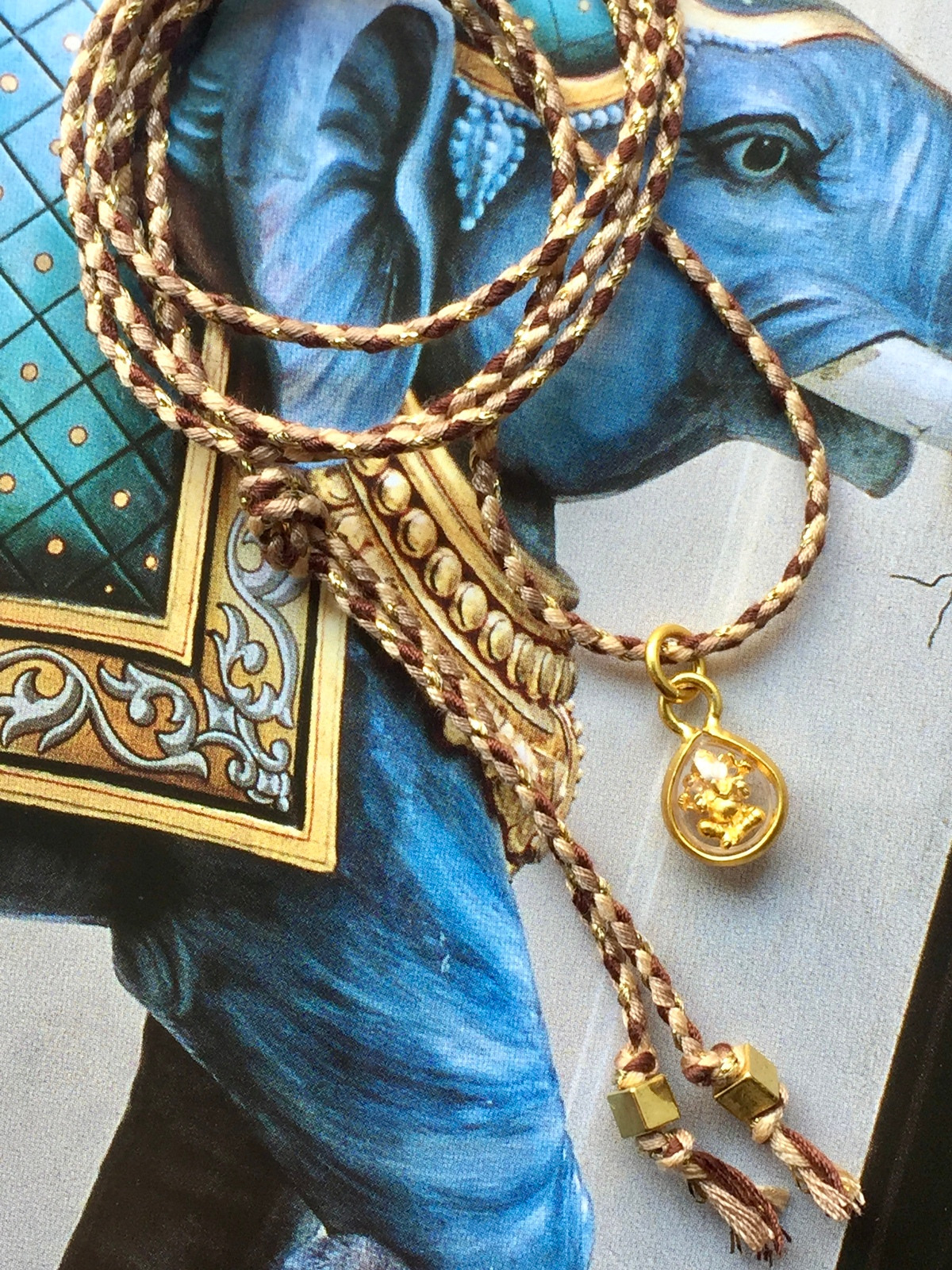 Light and playful, the Ganesh Amulet Magic Cord Necklace carries within its miniature form the vastness of Ganesh’s blessings—an intimate amulet of joy, wisdom, and divine companionship, close to the heart.