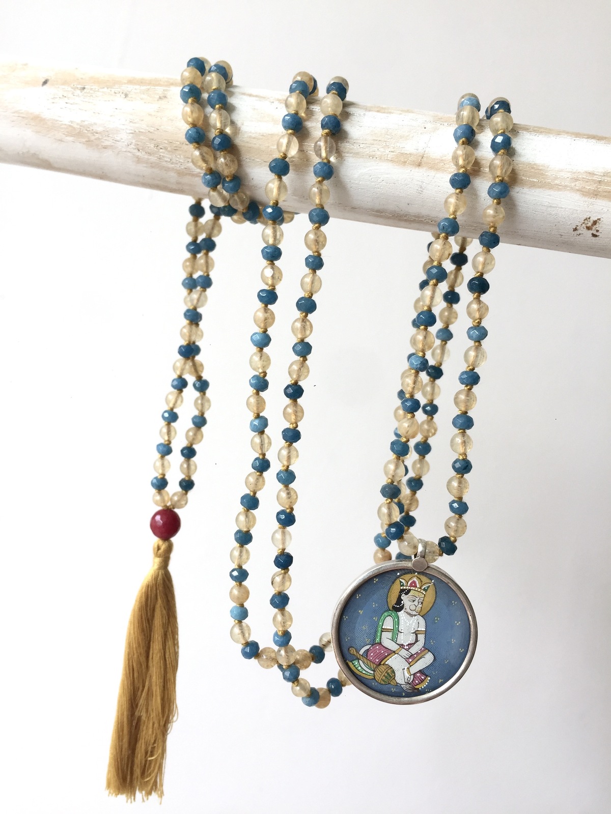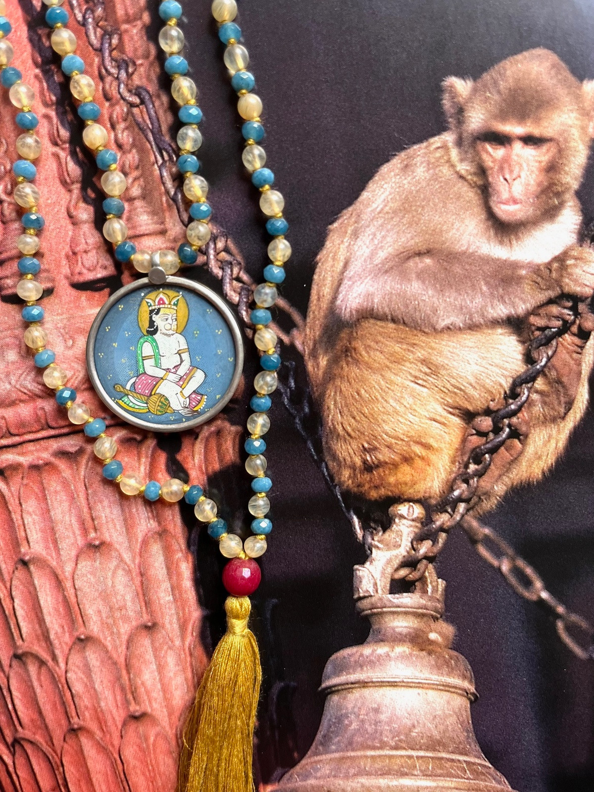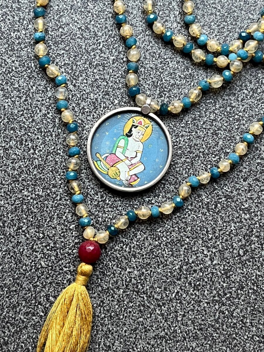 Each piece is one of a kind, combining the vibrancy of the beads with the intricate miniature painting to reflect Indian colors, handmade craftsmanship, and spiritual devotion. A wearable talisman of strength, courage, and sacred artistry.