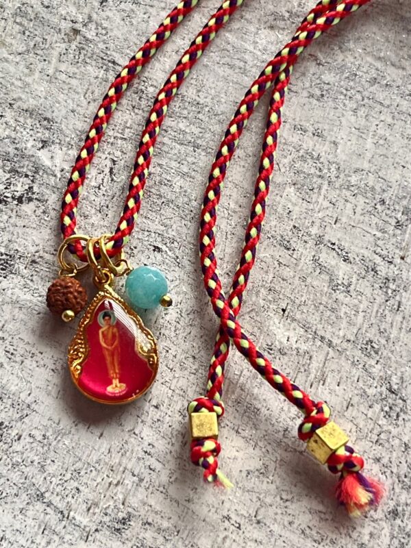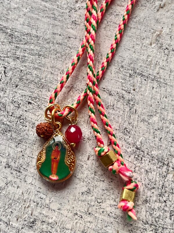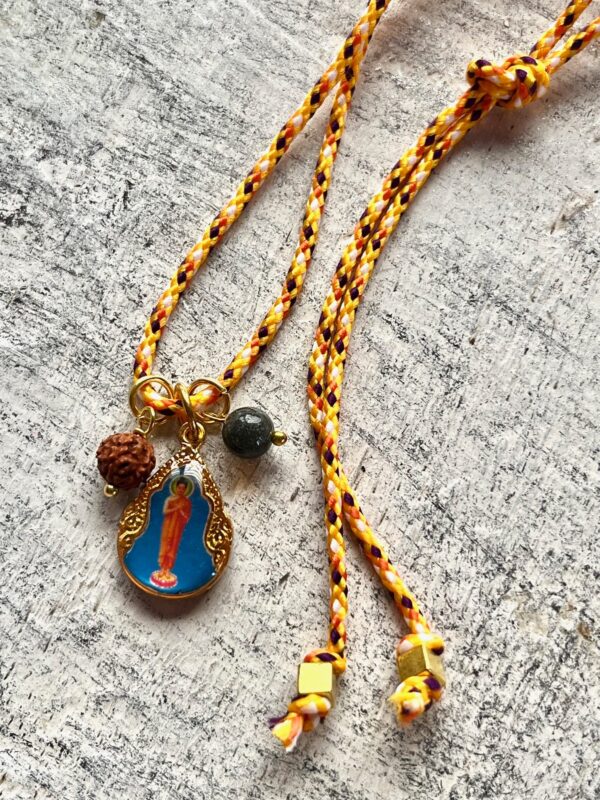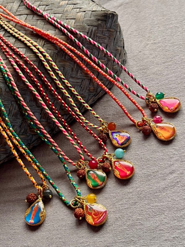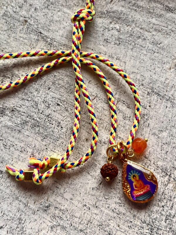 With its vibrant colors, sacred symbolism, and playful design, this necklace is a joyful talisman of mindfulness, devotion, and self-expression.